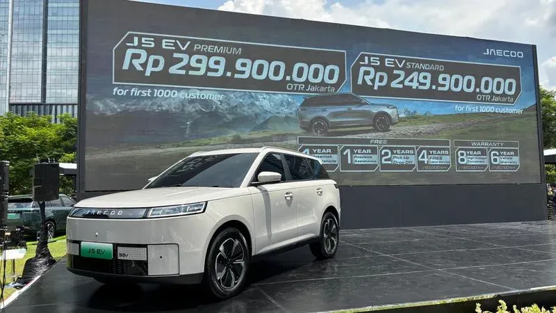 Mobil listrik Jaecoo J5 EV resmi diluncurkan di Indonesia pada Senin (3/11/2025). Berdasarkan data peluncuran, kendaraan listrik bergay...